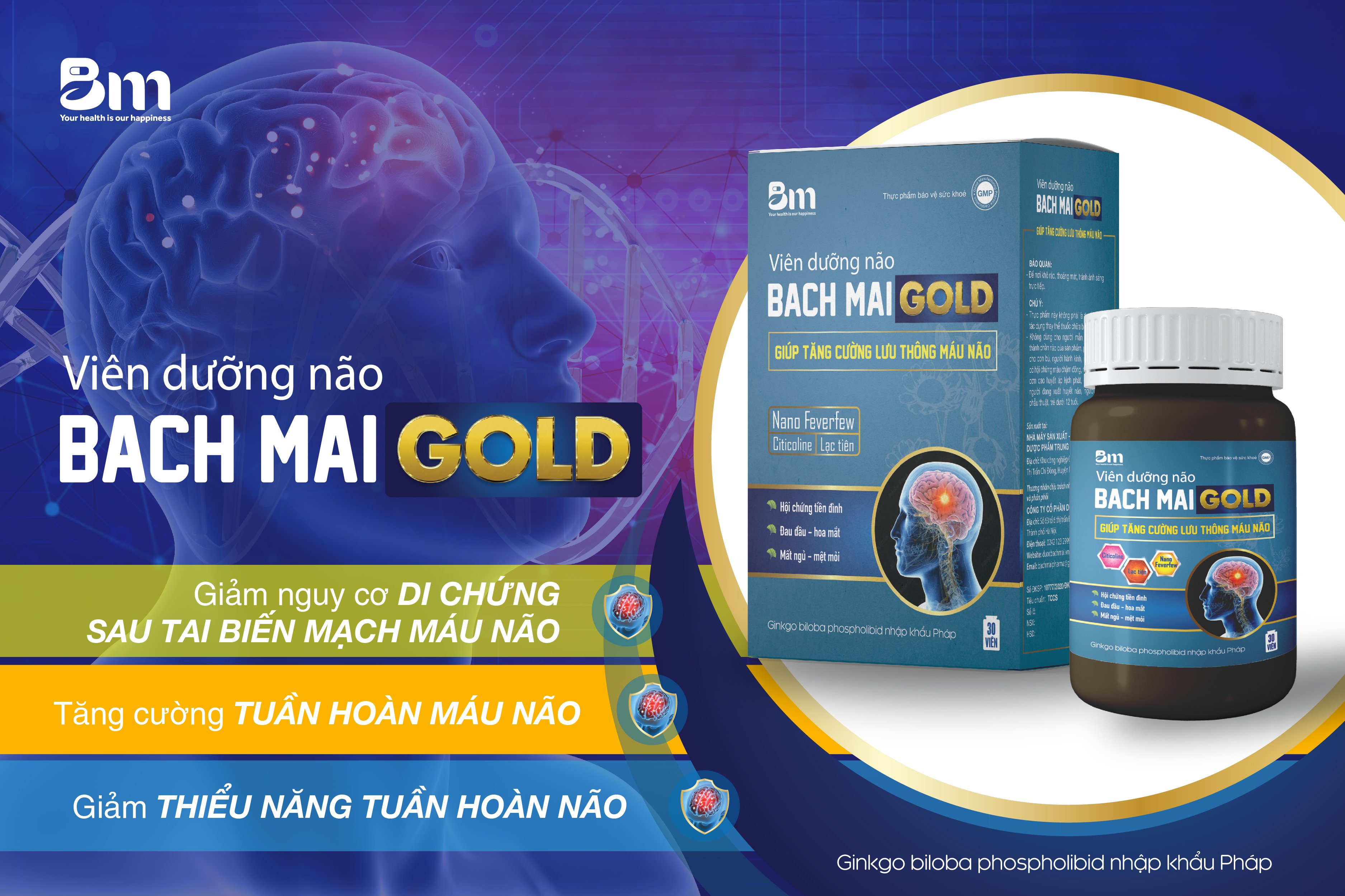 👍 Để cải thiện sức khỏe và hoạt động của não bộ, DƯỢC BẠCH MAI xin giới thiệu đến bạn #Viên_dưỡng_não_BachMai_Gold được chiết xuất từ cây bạch quả, nano feverfew... không chỉ hỗ trợ giảm hiệu quả triệu chứng đau nhức đầu, mà còn giúp giảm căng thẳng stress và mất ngủ, với công dụng: